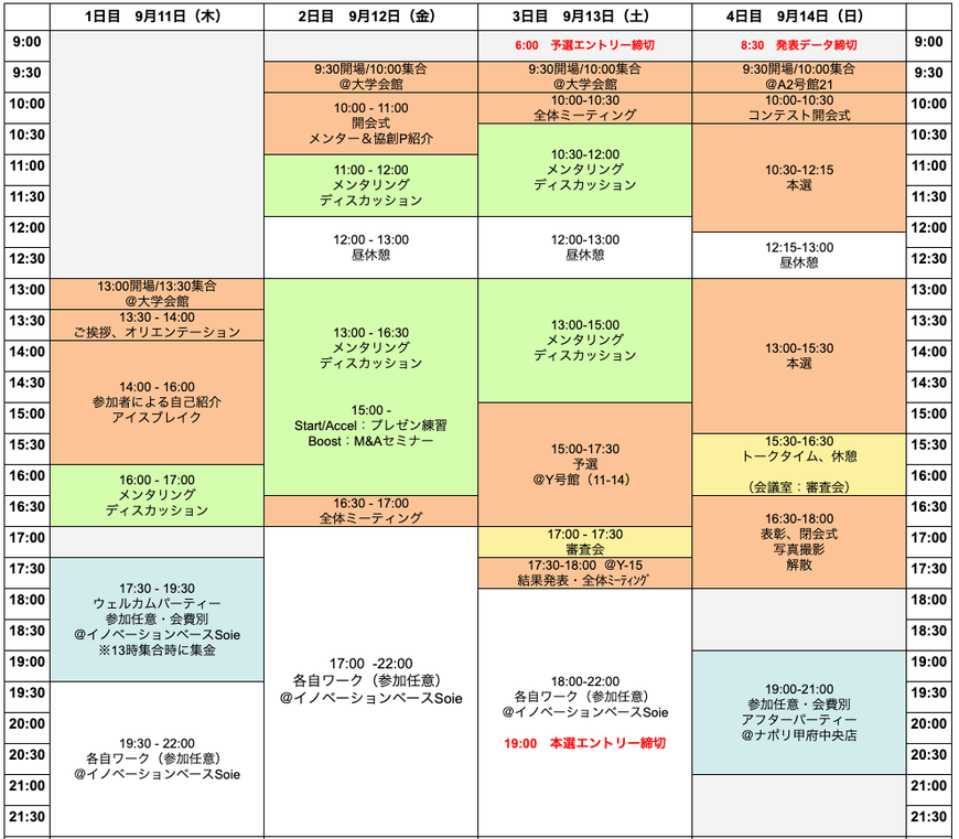 詳しくはスケジュール表をご覧ください!